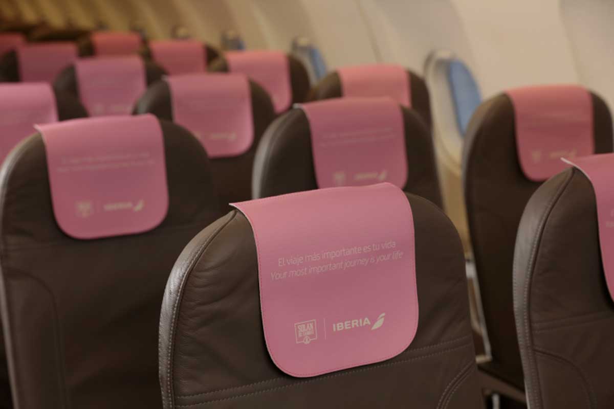 Los asientos de 42 vuelos de corto y medio radio se vestirán mañana con cabezales de color rosa, específicos para esta acción con el mensaje “El viaje más importante es tu vida”.